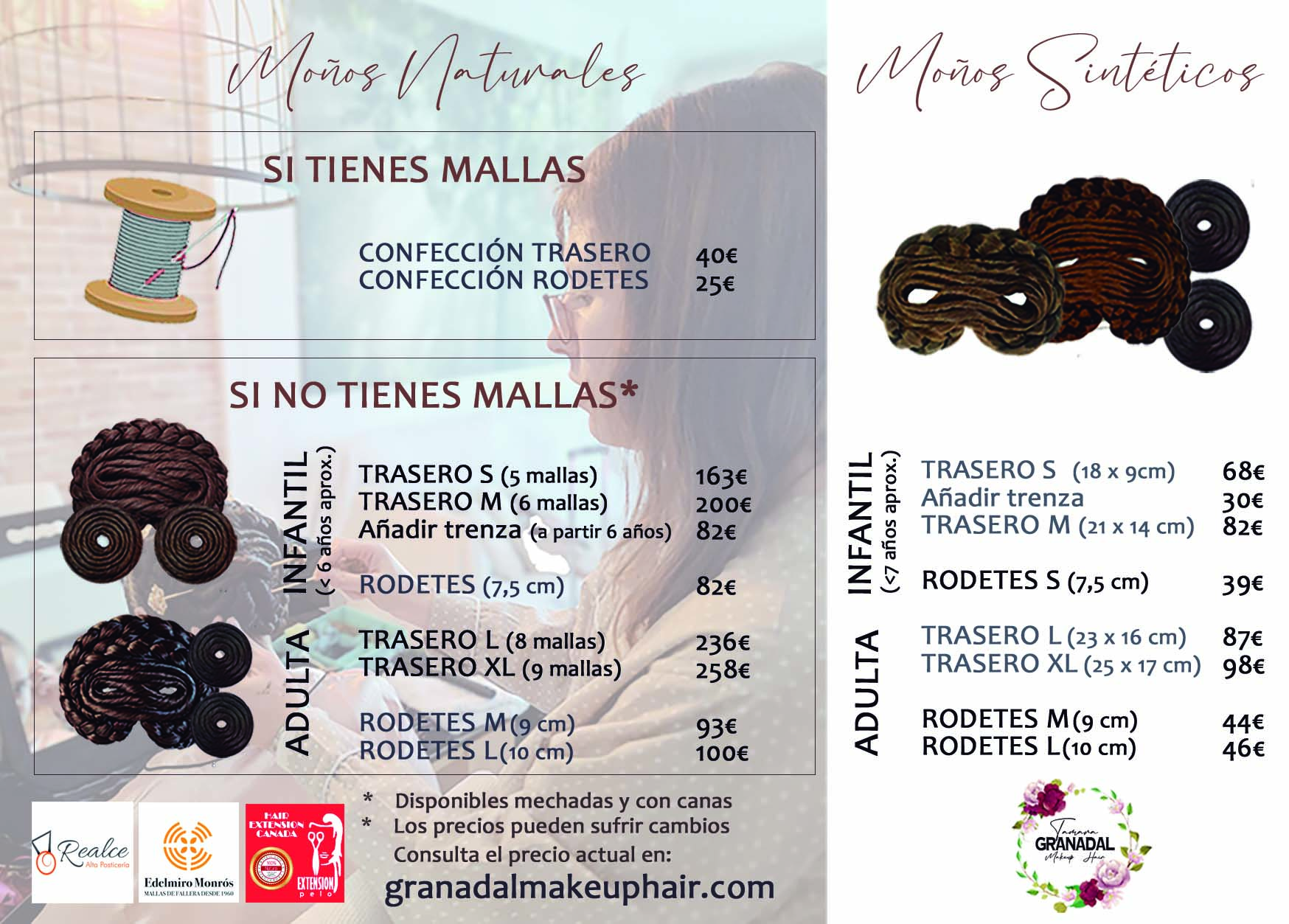 Si lo tuyo son los moños cosidos, también confecciono moños y soy intermediaria de proveedores de renombre en el sector de los postizos de fallera.