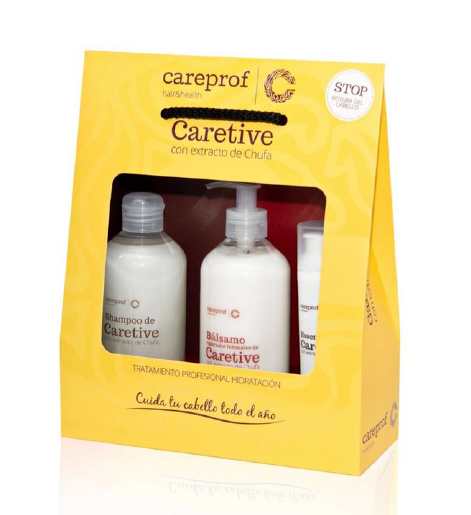 – Bálsamo reparador Chufa Caretive 500 ml repara la fibra capilar del cabello castigado desde el interior, protegiéndola de la acción térmica de planchas y secadores. Dota de brillo y suavidad al cabello sin apelmazarlo, además de facilitar el brushing y el styling. Soluciona problemas de alcalinidad en el cabello y actúa especialmente contra el salitre y el cloro.